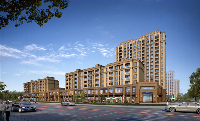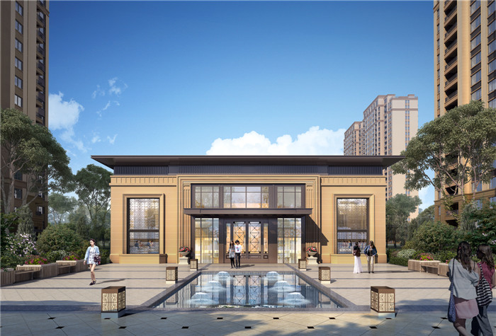 整體采用artdeco建筑風(fēng)格,建筑立面沉穩(wěn)大氣,富有質(zhì)感,立面材料采用深褐色、淺米褐色仿石真石漆,局部采用深褐色、淺米褐色石材。