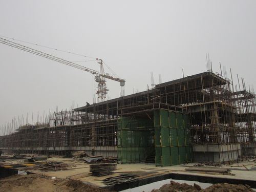 萬象城市綜合體水岸香堤1#樓主體二層模板、鋼筋施工中