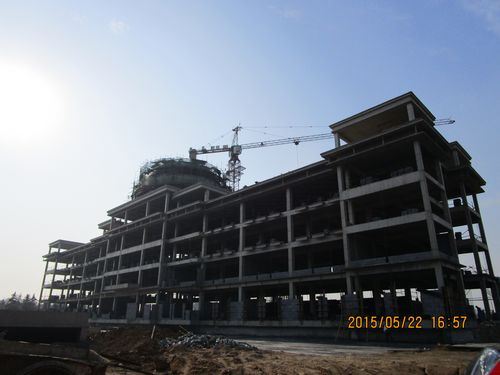 1、萬象城市綜合體水岸香堤1#樓穹頂造型施工,填充墻砌筑,地下車庫頂板找平層完成。