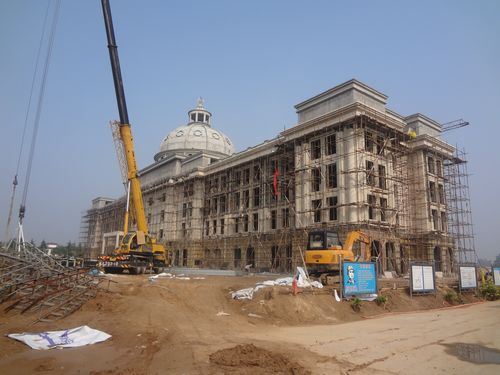 樓裝飾工程水電進場,內(nèi)墻抹灰進場,室外石材施工。