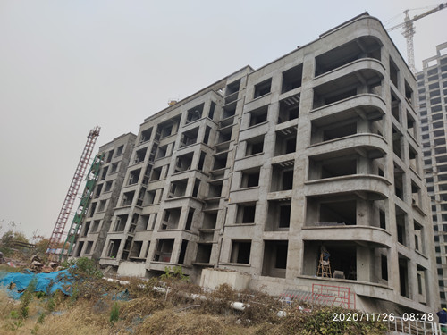 5#主體已封頂二次結構砌筑及內外粉完成,外墻保溫完成40%。