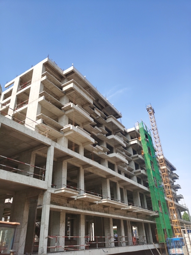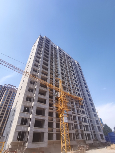 7#樓主體驗(yàn)收完成,內(nèi)墻粉刷開(kāi)始施工。