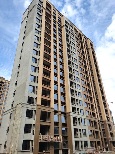 9#樓外墻真石漆施工。