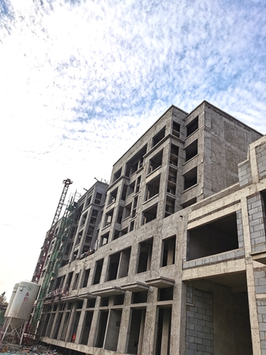 11#樓內(nèi)墻粉刷施工完成,屋面防水施工。