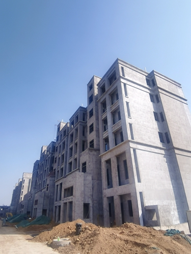 9#樓外墻真石漆完成,正在施工樓梯踏步磚。
