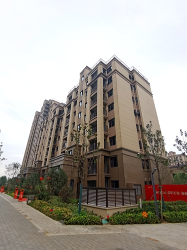 10#樓外墻真石漆施工完成,公共區(qū)域墻地磚鋪貼,大堂裝修施工。