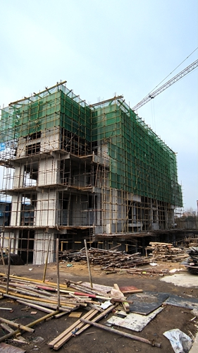 3、3#樓內(nèi)墻粉刷15-18層完成,外墻粉刷完成30%。