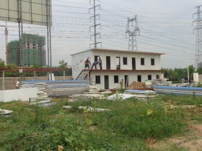 1、藍(lán)天打樁完成,降水排管,搭設(shè)辦公室。