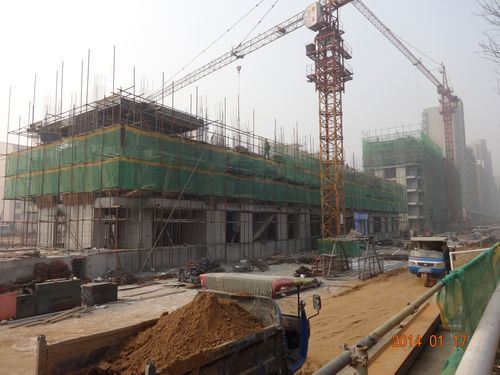1、萬象藍(lán)天1#樓七層梁板柱墻鋼筋綁扎,模板安裝。