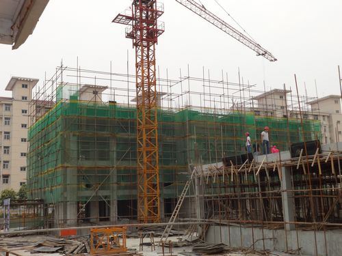 2、萬象藍天3#樓綁扎4層鋼筋綁扎、模板安裝。
