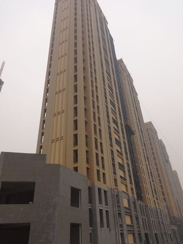2、萬象藍(lán)天2#樓外墻真石漆,內(nèi)墻罩白,水電安裝,電梯安裝。