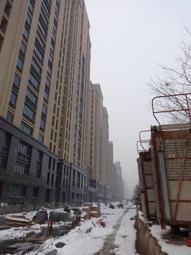 3、萬象藍(lán)天3#樓外墻保溫完成,鋪設(shè)室內(nèi)暖氣管道。