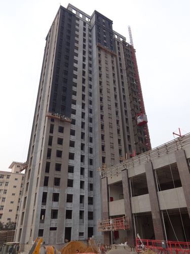 2、萬(wàn)象藍(lán)天3#樓地坪施工,外墻真石漆基層施工。