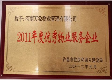 “許昌市2011年度優(yōu)秀物業(yè)服務(wù)企業(yè)”獎(jiǎng)牌