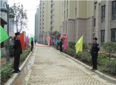 小區(qū)業(yè)主結婚,物業(yè)公司插彩旗、站禮賓,為業(yè)主提供高貴服務