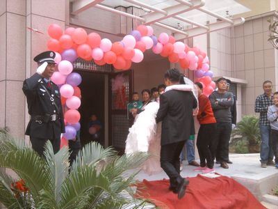 物業(yè)公司為結婚業(yè)主搭設幸福門,站好把門崗