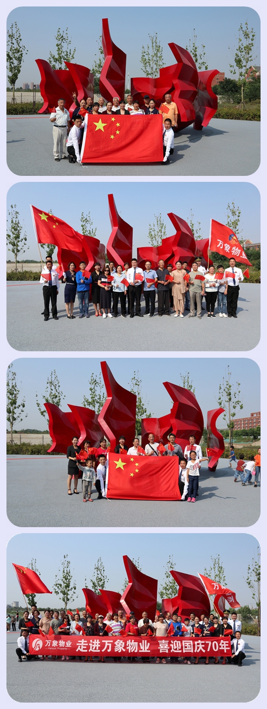 萬象物業(yè)客服管家柳棲作為本次游覽參觀的講解員,一路向我們闡述了黨建公園各個地標(biāo)性景觀小品的歷史和發(fā)展由來,帶給我們很深的感觸。飄揚(yáng)的五星紅旗記錄下了祖國和黨的光輝歲月,70年的建國歷程,70年的砥礪奮進(jìn),一棒一棒傳承,我們的國家發(fā)生了翻天覆地的變化,祝福我們的祖國,更加繁榮昌盛。