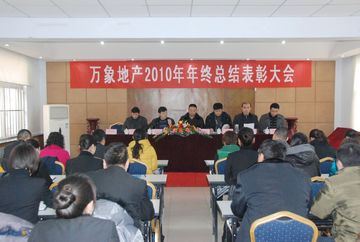 1月24日,公司全體員工齊聚物業(yè)公司會議室,召開2010年年終總結(jié)表彰大會。董事長王福增先生、副董事長金呔臣先生出席了會議并講話,地產(chǎn)公司全體人員、物業(yè)公司中層以上領(lǐng)導(dǎo)參加了此次會議。會議由副總經(jīng)理丁一軍主持。 會上,蔡會卿總經(jīng)理指出,2010年,公司全體人員克服國家對地產(chǎn)業(yè)宏觀調(diào)控帶來的影響,一面抓好原有項目的建設(shè)、交付和資金回籠工作,一面根據(jù)市場變化啟動了新的項目,取得了比較好的成績。全年共完成竣工面積14582m2;開工面積8萬m2;完成工程總投資1297萬元。時代廣場、萬象新天銷售率達100%;萬象春天一期累計認籌510套,定房337套,回款約4330萬元,銷售率達59%;累計實現(xiàn)全年銷售回款7100萬元。上報稅金300余萬元;物業(yè)公司也在創(chuàng)國優(yōu)工作中得到了國家驗收組的高度評價。蔡總在總結(jié)一年來工作的同時也對2011年的工作提出了綱領(lǐng)性意見,在2011年我們要從“經(jīng)營管理謀跨越、制度流程謀創(chuàng)新、團隊建設(shè)謀發(fā)展、文化建設(shè)謀多采、物業(yè)管理謀深化”五個方面來開展我們未來的工作。計劃2011年完成開工面積19萬平方米,完成工程投資1.3億元。銷售回款達3.5億,項目融資6000萬元,工程建設(shè)上春天花園一期完成75%,達到主體封頂,安裝工程開始進行;二期于4月份開工,開工面積達4萬平方米,年底主體封頂。并啟動4#地開發(fā)程序,8月底爭取開工建設(shè)。10月進行認籌,11月轉(zhuǎn)定。