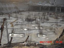 5、6#樓墊層澆筑完成,綁扎基礎(chǔ)鋼筋。