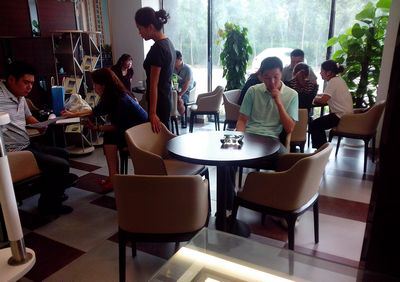 到場客戶在聽取置業(yè)顧問的講解