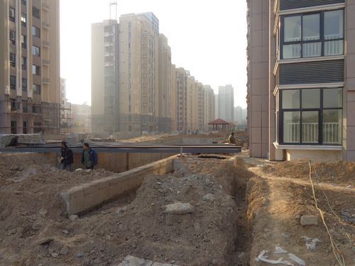 3、萬象春天室外部分:景觀水系鋪設(shè)石材,停車位3#、6#樓鋪設(shè)完成,廁所綁屋面鋼筋。