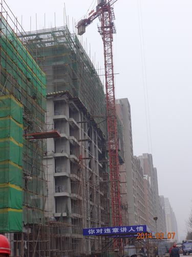 3、萬象藍天2#樓7層鋼筋綁扎,模板安裝。