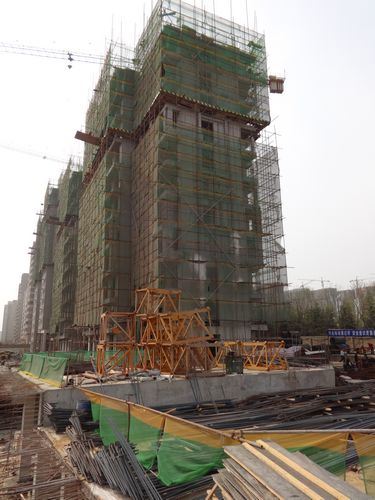 4、萬(wàn)象藍(lán)天2#樓12層鋼筋綁扎,腳手架搭設(shè)。