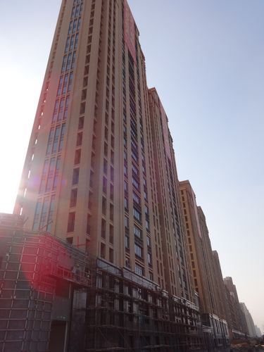 2、萬象藍天2#樓石材施工,衛(wèi)生打掃。