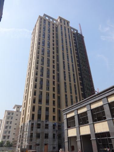 3、萬象藍(lán)天3#樓外墻真石漆施工,外墻石材搭設(shè)腳手架。