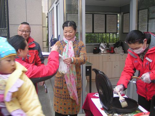 業(yè)主開(kāi)心的領(lǐng)取煎餅