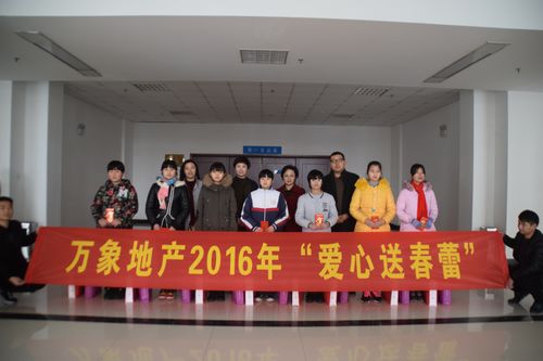 十一年萬象,十一年愛!萬象地產(chǎn) “愛心送春蕾”活動(dòng)2016年繼續(xù)傳遞溫暖!我們提前為孩子們準(zhǔn)備了助學(xué)金和棉衣、大米、面粉、食用油等生活必需品,由公司領(lǐng)導(dǎo)帶隊(duì)走入春蕾女童的家中送上冬日的問候。