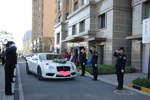 當(dāng)萬象物業(yè)得知水岸香堤小區(qū)有新人要結(jié)婚的消息后,立即組織協(xié)調(diào),安排物業(yè)人員連夜布置現(xiàn)場(chǎng)。物業(yè)人員把紅地毯從單元門口一直鋪到電梯口,還在樓道內(nèi)貼上大紅喜字和彩色氣球,并專門抽調(diào)8名訓(xùn)練有素的保安人員和2名客服人員組成儀仗隊(duì)來迎接新人和親友。從迎親車輛進(jìn)入園區(qū)門口開始,每到一個(gè)路口,都會(huì)有專人為其指揮車輛。整齊的著裝、潔白的手套、貼心的服務(wù),顯示出萬象物業(yè)良好的風(fēng)貌,也得到了業(yè)主及來賓的贊揚(yáng)。