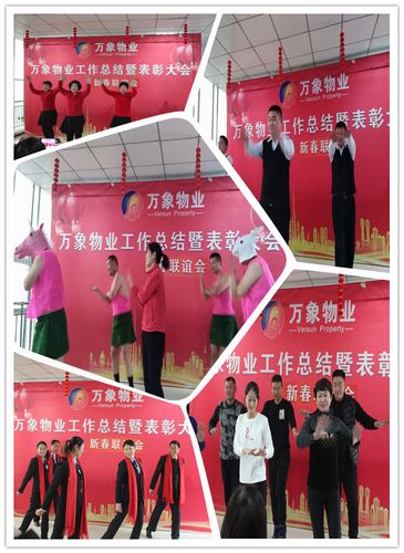 歌伴舞《紅梅贊》、服裝秀《穿越》,還有風(fēng)格迥然不同的歌曲和表演形式,如《笨小孩》、《太湖美》、三句半《物業(yè)人賀新年》、詩朗誦《我是物業(yè)人》等節(jié)目都將我們的新春聯(lián)誼會推向了一波又一波高潮,特別是公秩大哥帶來的曲劇《李豁子做夢》更是幽默風(fēng)趣,引得大家捧腹大笑。