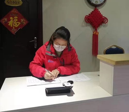 鄧悅是萬(wàn)象藍(lán)天花園的一名項(xiàng)目經(jīng)理。自收到疫情防控消息的那刻起,她就取消了所有的休假,積極投入到一線工作中。作為項(xiàng)目的主要負(fù)責(zé)人,她不僅要配合社區(qū)做好園區(qū)的各項(xiàng)登記管理工作,面臨人員緊張、工作繁雜的情況,她還要肩負(fù)至業(yè)主家登記走訪,為老年業(yè)主購(gòu)買醫(yī)藥用品,為業(yè)主代購(gòu)菜品的重任。除此之外,她還要每天對(duì)園區(qū)的保潔消殺進(jìn)行監(jiān)督管理,對(duì)員工的防護(hù)、健康進(jìn)行督查監(jiān)護(hù),一項(xiàng)項(xiàng)的工作都需要時(shí)間實(shí)施整理,她每天都要工作至很晚才能回到家中,而年僅四歲的兒子早已進(jìn)入夢(mèng)鄉(xiāng)。面對(duì)自己的小家與園區(qū)的大家,她巾幗不讓須眉,在親人的牽掛中,義無(wú)反顧踏上抗擊疫情保衛(wèi)家園的征程。