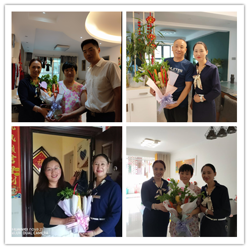不計辛勤一硯寒,桃熟流丹,李熟技殘,種花容易樹人難。幽谷飛香不一般,詩滿人間,畫滿人間,英才濟濟笑開顏,三尺講臺度光陰,一束花蔬報師恩,我們?yōu)榫幼≡谌f象園區(qū)的教師們,登門獻禮,愿將萬象對美好生活的向往,再次傳遞給教師。