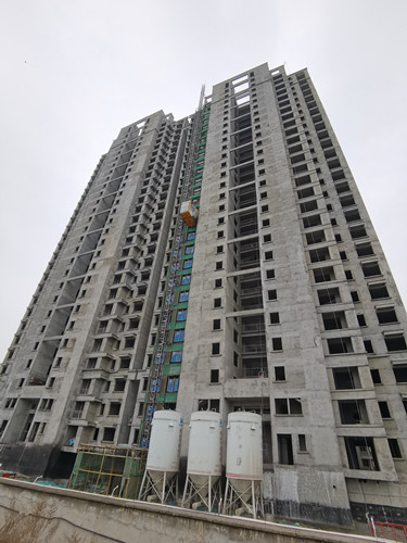 3#樓主體已封頂外保溫完成,排水立管安裝完成,給水管安裝。