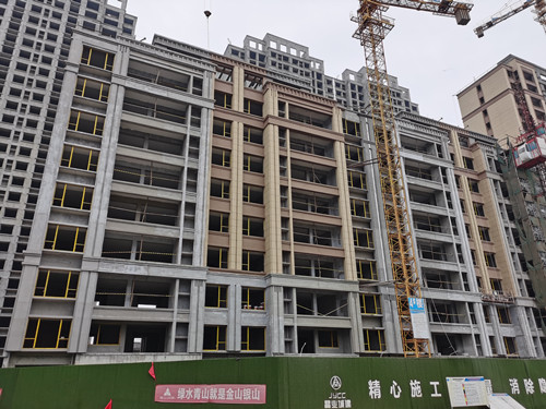 4#樓主體已封頂外墻漆完成70%,地坪完成,窗框安裝完成。