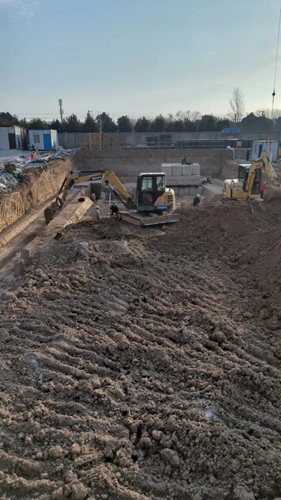 8、9號(hào)樓墊層澆筑完成,磚胎膜砌筑。
