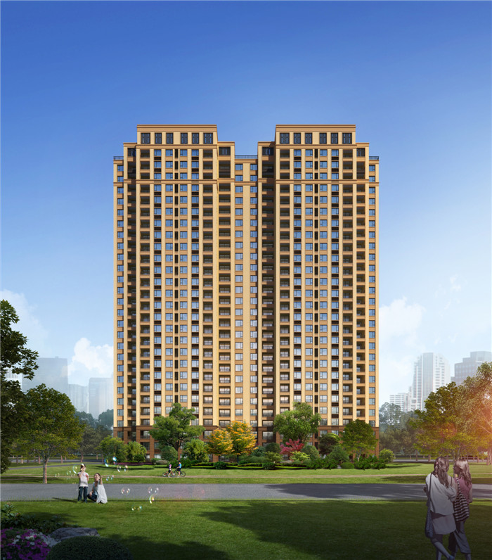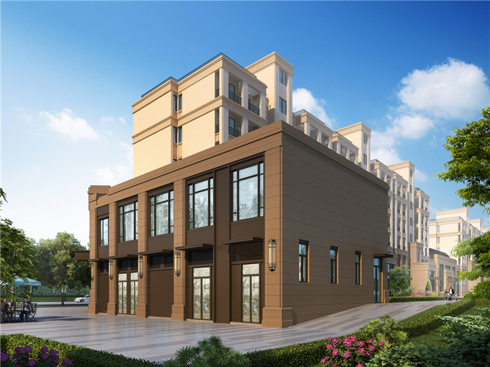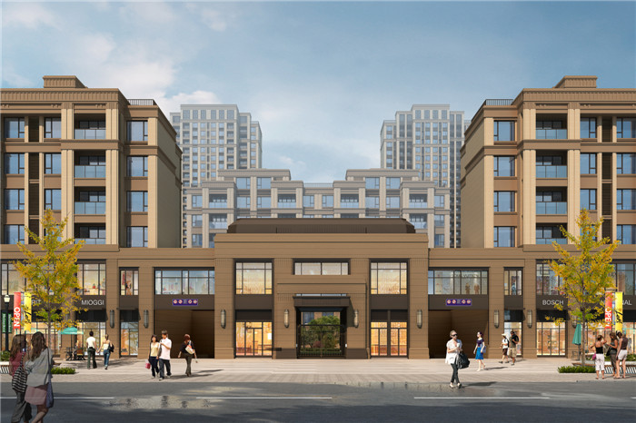 整體采用artdeco建筑風(fēng)格,建筑立面沉穩(wěn)大氣,富有質(zhì)感,立面材料采用深褐色、淺米褐色仿石真石漆,局部采用深褐色、淺米褐色石材。
