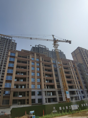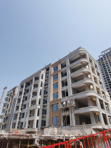 6#樓窗玻璃安裝完成,外墻真石漆完成30%。
