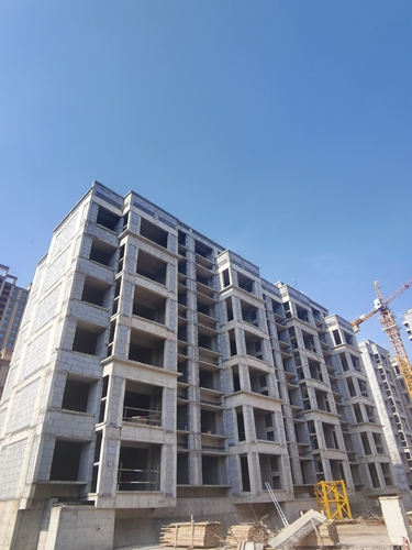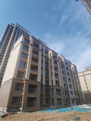 7#樓主體驗(yàn)收完成,內(nèi)墻粉刷開(kāi)始施工。