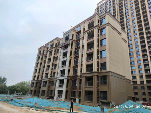 景觀工程:1#2#樓北側(cè)圍墻真石漆施工。