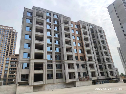 9#樓外墻漆施工,室內(nèi)批白完成,窗框安裝完成。