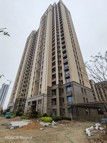 景觀工程:1#2#樓北側(cè)種植苗木,1#2#樓北側(cè)道路鋪裝,西側(cè)圍墻柱澆筑混凝土。