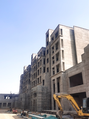 9#樓外墻真石漆完成,正在施工樓梯踏步磚。