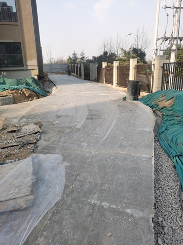 景觀工程:南區(qū)道路混凝土澆筑完成,大門口廊架完成。