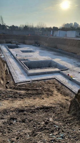 8、9號樓墊層澆筑完成,磚胎膜砌筑。