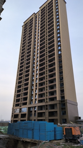 2、2號樓外墻保溫真石漆完成,內(nèi)墻粉刷完成,窗框玻璃安裝完成,戶內(nèi)強(qiáng)電穿線完成。