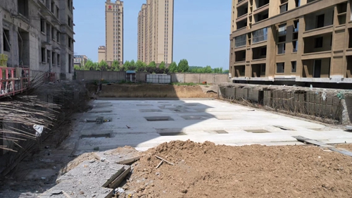 9、1#樓南側(cè)車庫墊層澆筑完成。