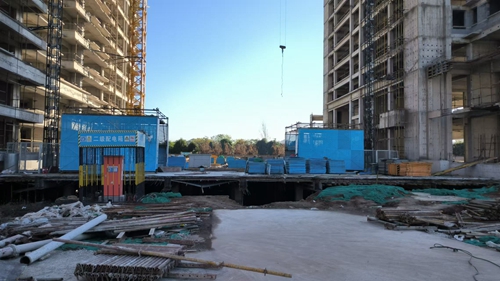 10、5#樓南側(cè)車庫主體封頂。
